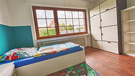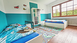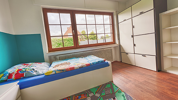 Neben dem eigenen Garten befindet sich in unmittelbarer Nähe ein städtischer Spielplatz und das Haus liegt in einer ruhigen Wohnsiedlung. Das Haus Boje bietet Platz für 8 Kinder von 3 bis 10 Jahren (mit Ausnahme von Sonderregelungen).